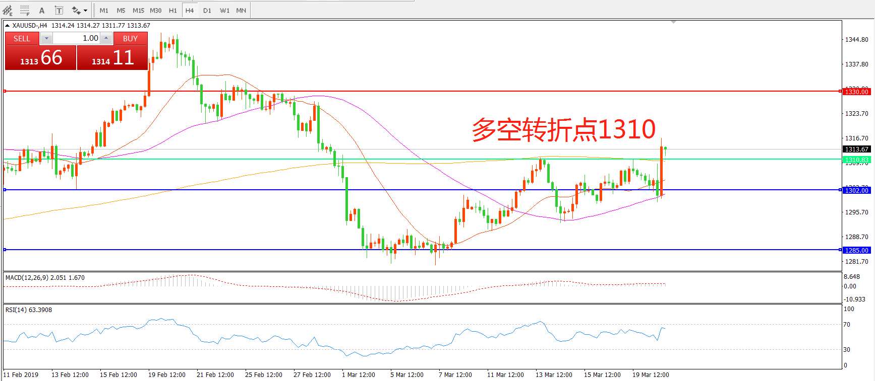 多空转折点:1310.00