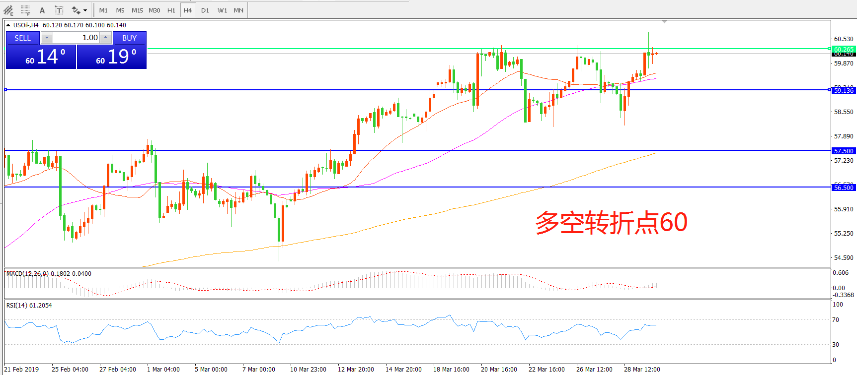 多空转折点:60.00
