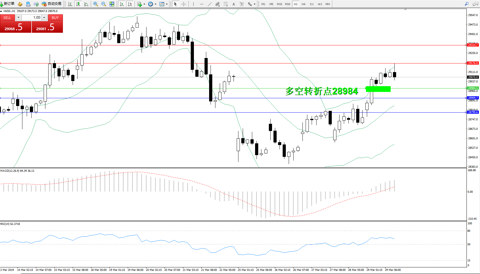 交易策略:28984上方看涨,目标29176、29314