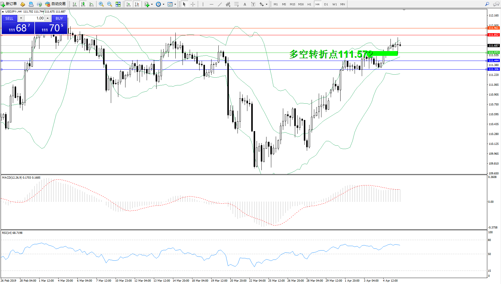 交易策略:111.572上方看涨,目标111.852111.961