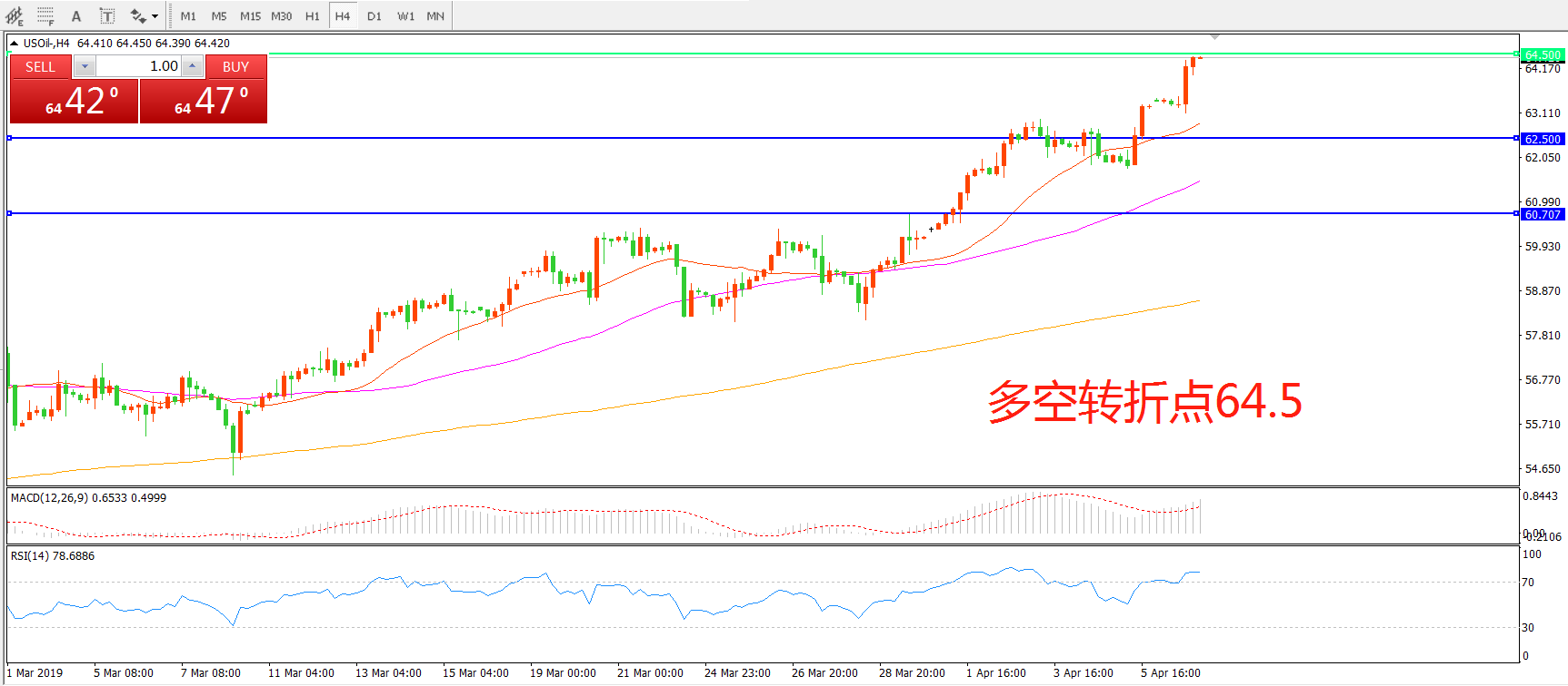 多空转折点:64.50