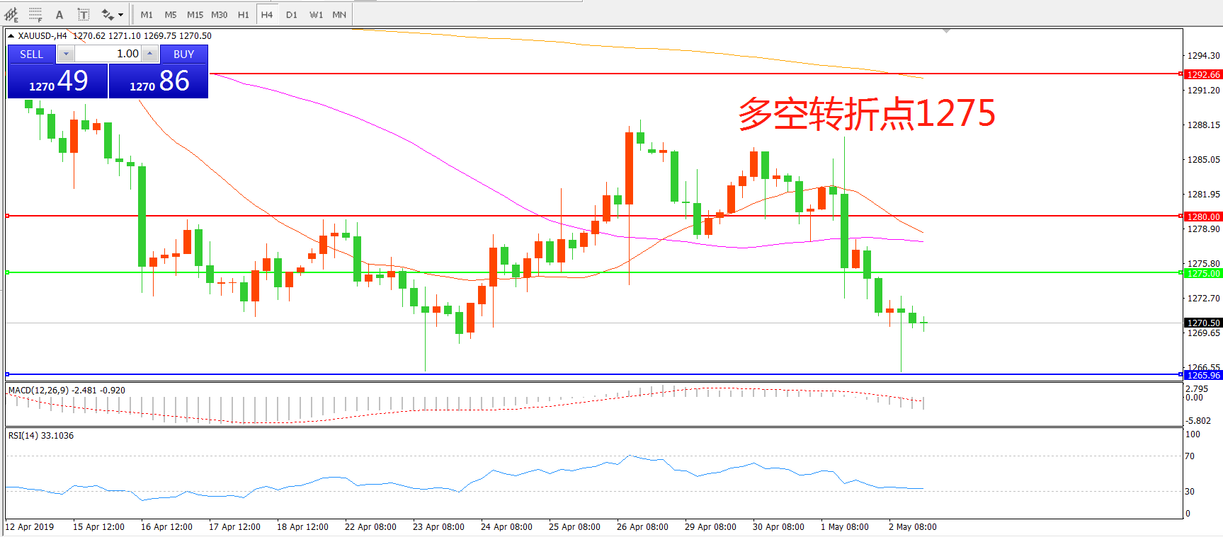 多空转折点:1275.00