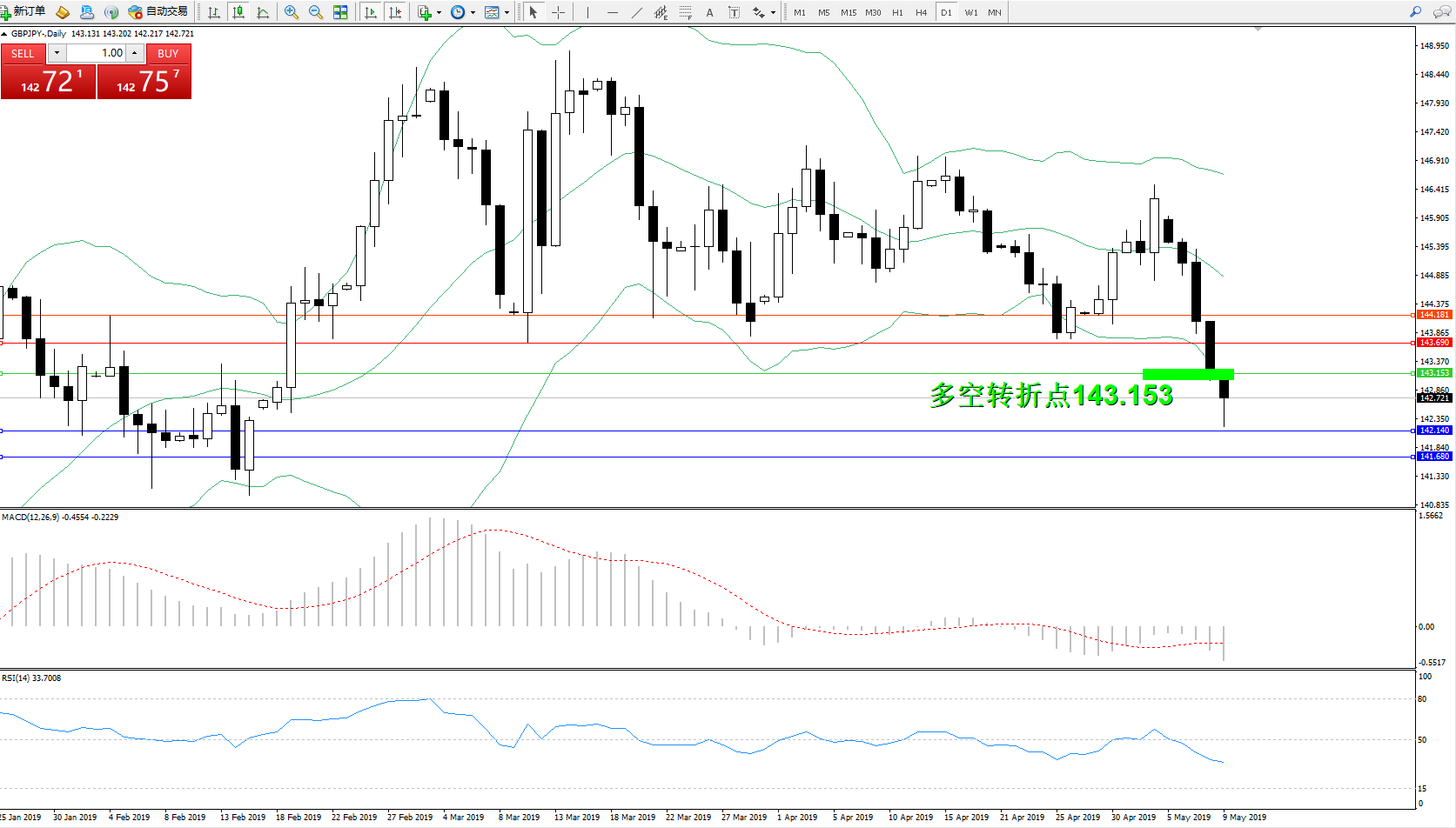 交易策略:143.153下方看跌,目标142.140、141.680
