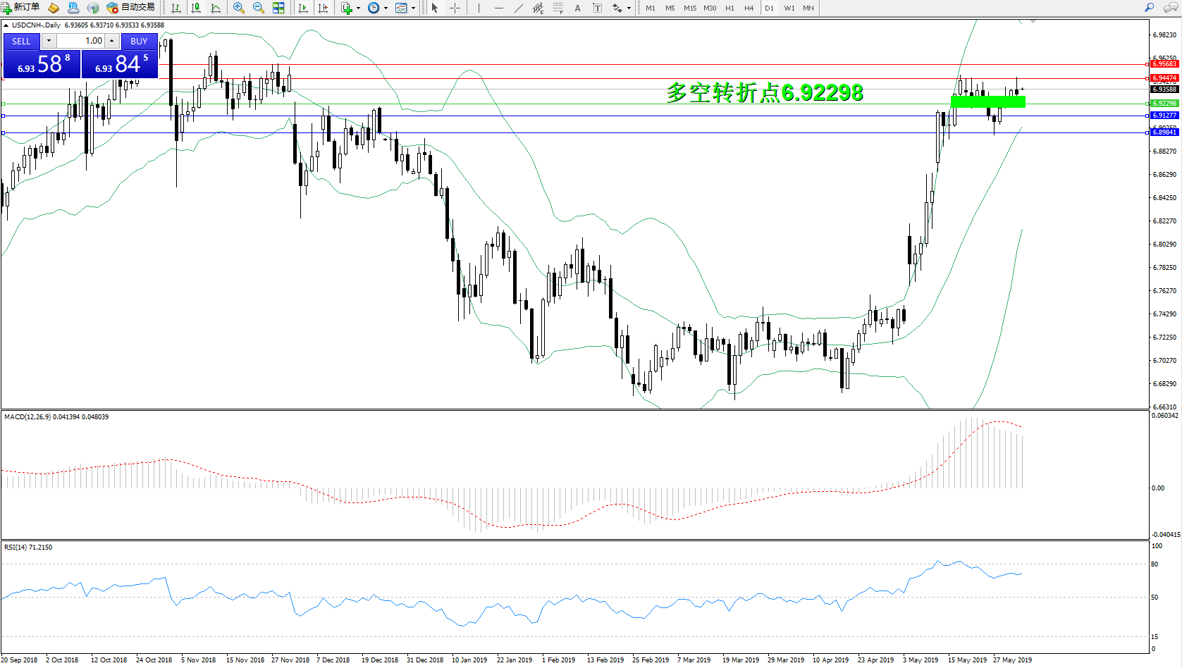 交易策略:6.92298上方看涨,目标6.94474、6.95683