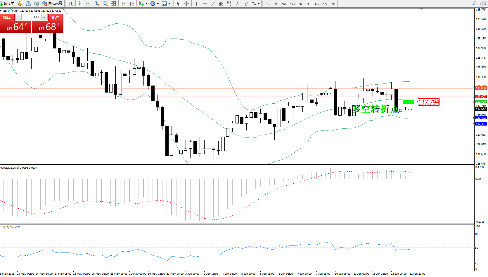 技术点评:维持布林带通道持续横盘中,短期压制处于中轨附近,下轨附近支撑依旧,有继续维持宽幅整理局势,MACD指标多头区域回撤至0轴线徘徊,RSI指标处于50均衡线下方维持震荡;