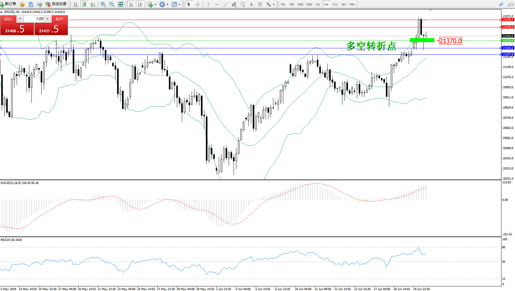 交易策略:21370上方看涨,目标21479、21539