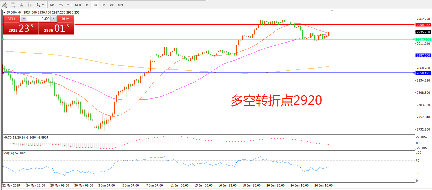 多空转折点:2920.00