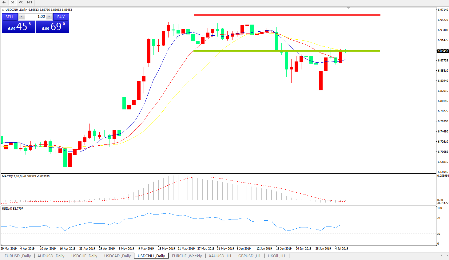交易策略: 在6.9000之下,看跌,目标价位为6.8100,然后为6.7600。