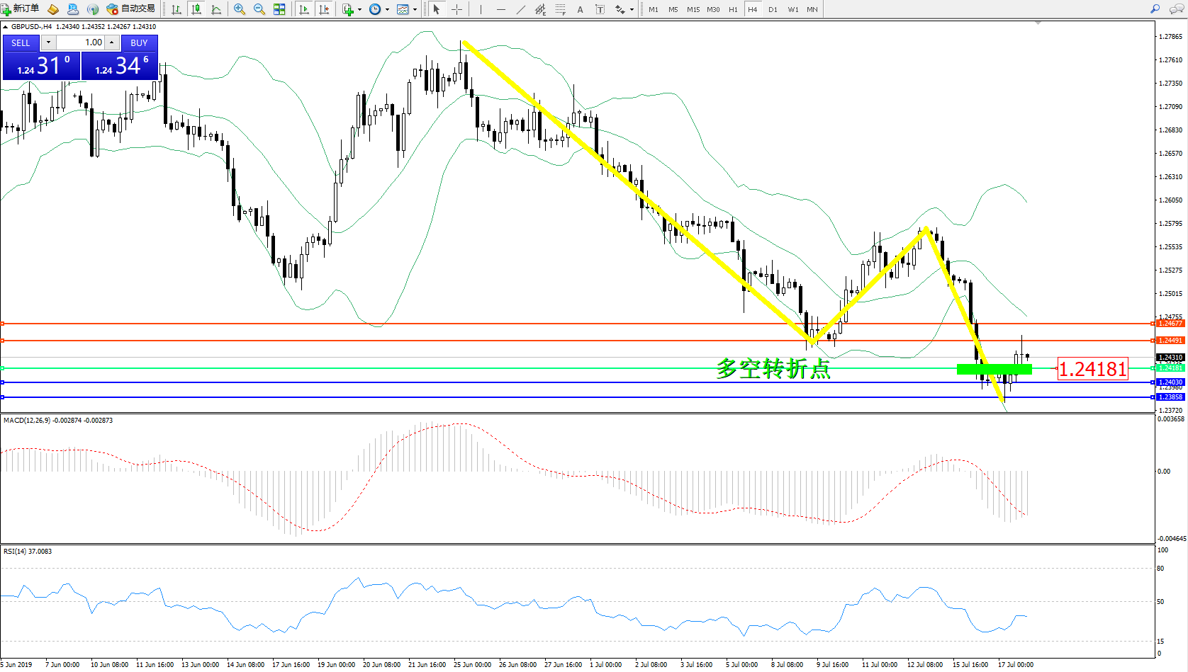 英镑美元GBPUSD ——4小时K线图显示: