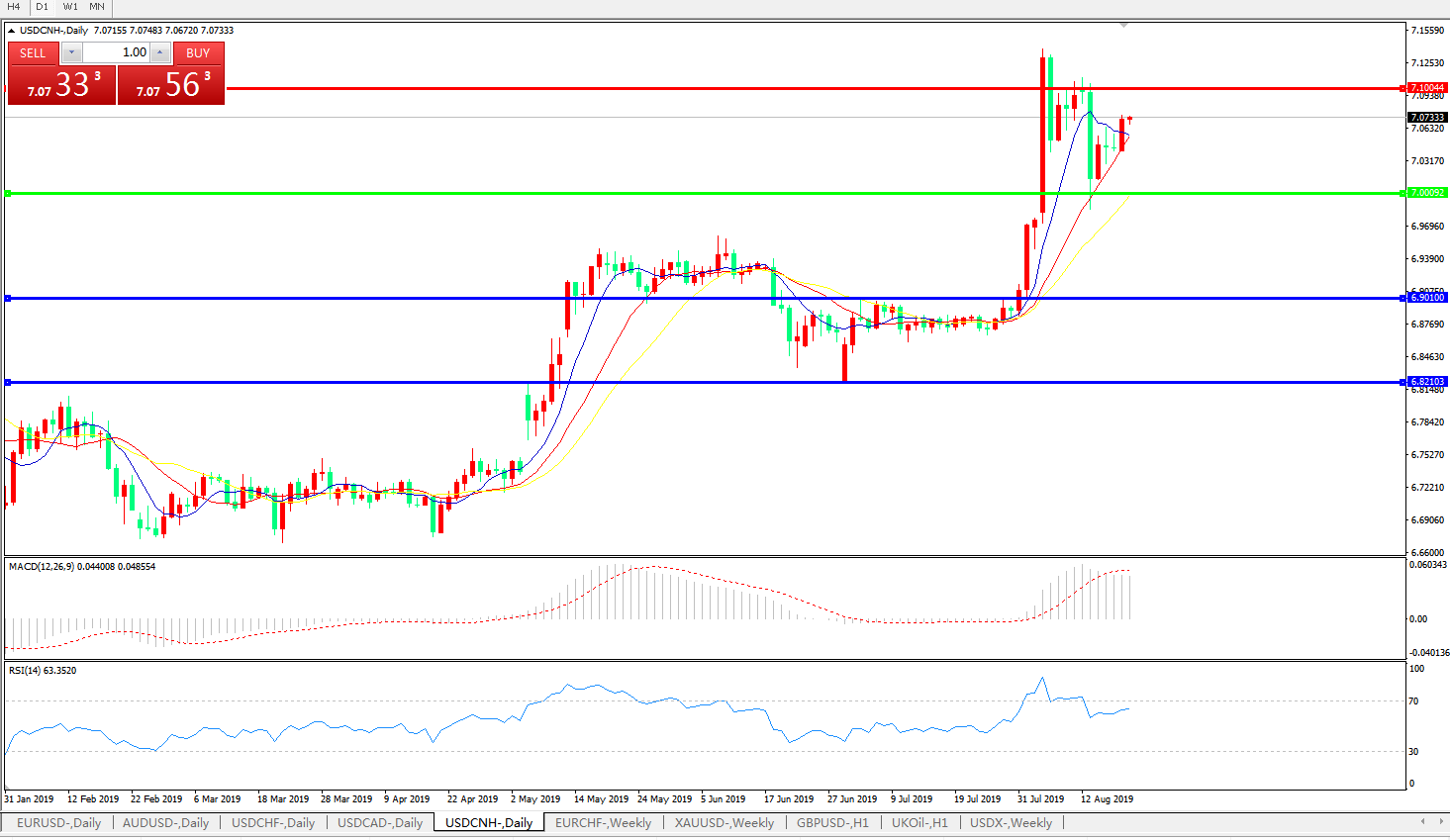 备选策略: 在7.0000之下,看跌,目标价位为6.9010,然后为6.8210。