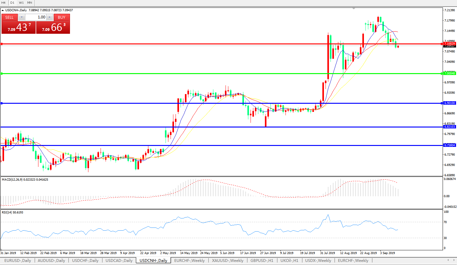 亚市早盘美国总统特朗普最新在推特上表示,将把加码对华关税的时间从101日推迟到1015日。特朗普称,将于1015日提高对2500亿美元中国商品加征的关税。在岸人民币周三收跌137点,回吐昨日过半涨幅,中间价则小升3点创两周新高,交易员称,市场风险偏好继续回暖,但人民币在升破7.1关口后逢低购汇迅速出手,也反应市场对后市走势预期仍然谨慎,要持续升破7.1甚至高于中间价,则需要更多的利好。分析师指出,眼下,欧洲央行宽松预期或仍加剧美元被动走强,这将在短期内令人民币续升空间受限。但同时,中间价继续持稳,反过来也限制了人民币跌势。另外大行在长端掉期的卖压略有减少,长端掉期稳步小升。瑞穗银行最新观点称,短期内人民币将继续维持7.1-7.2之间波动。中国国务院总理李克强周二表示,中美两国存在广泛的共同利益,双方应当按照两国元首达成的共识,本着平等和相互尊重的原则,求同存异,找到双方都可以接受的解决分歧的办法