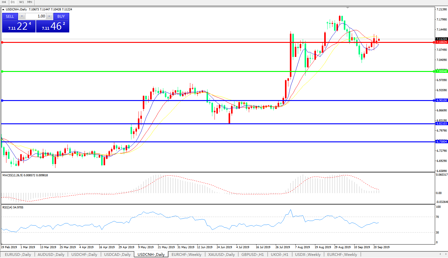 交易策略: 在7.0000之上,看涨,目标价位为7.1000,然后为7.2000。