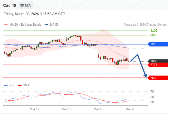 Cac 40 当日内: 下跌趋势。
