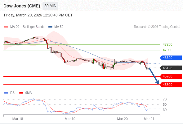 在 46620 之下,看跌,目标价位为 45700 ,然后为 45300 。