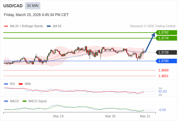 替代方案: 在1.3700以下,期待1.3669和1.3651。