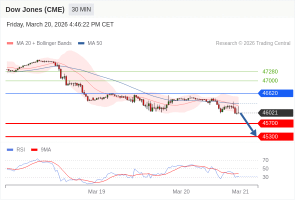 在 46620 之下,看跌,目标价位为 45700 ,然后为 45300 。