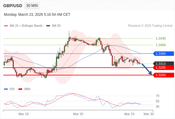英镑/美元 当日内: 朝1.3295运行。