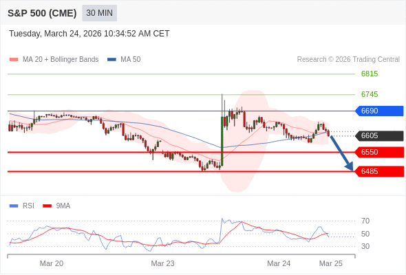 在 6690 之下,看跌,目标价位为 6550 ,然后为 6485 。
