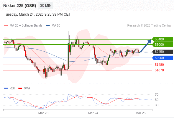日经225股指期货 (OSE) 当日内: 超短线(当日内)支撑位在52000附近。