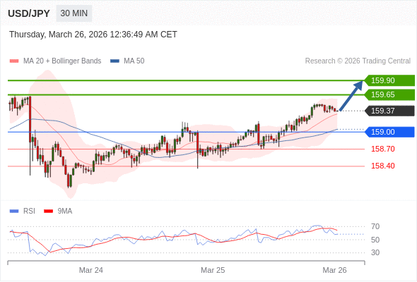 在 159.00 之上,看涨,目标价位为 159.65 ,然后为 159.90 。