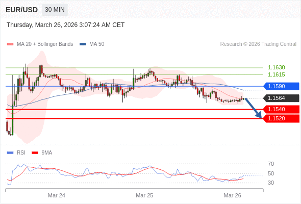 在 1.1590 之下,看跌,目标价位为 1.1540 ,然后为 1.1520 。