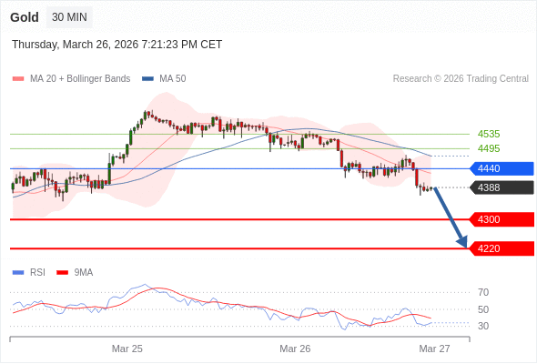 在 4440 之下,看跌,目标价位为 4300 ,然后为 4220 。
