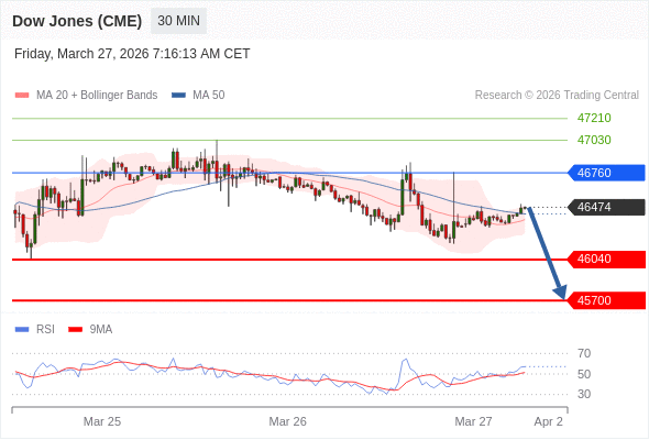 在 46760 之下,看跌,目标价位为 46040 ,然后为 45700 。