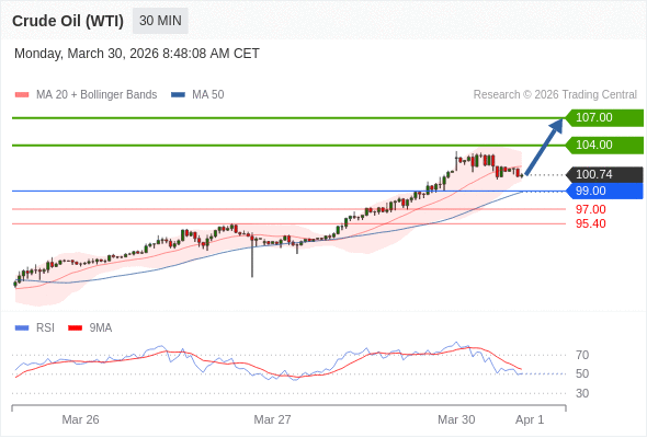 在 99.00 之上,看涨,目标价位为 104.00 ,然后为 107.00 。