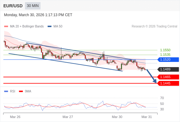 在 1.1520 之下,看跌,目标价位为 1.1465 ,然后为 1.1445 。