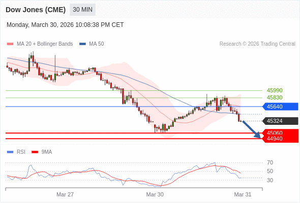 在 45640 之下,看跌,目标价位为 45060 ,然后为 44940 。