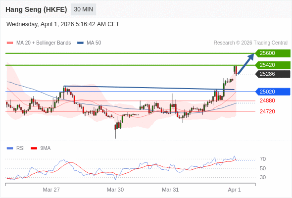 在 25020 之上,看涨,目标价位为 25420 ,然后为 25600 。