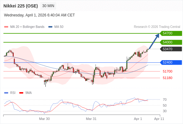 交易策略: 在 52400 之上,看涨,目标价位为 54000 ,然后为 54700 。