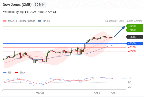 在 46300 之上,看涨,目标价位为 47000 ,然后为 47200 。