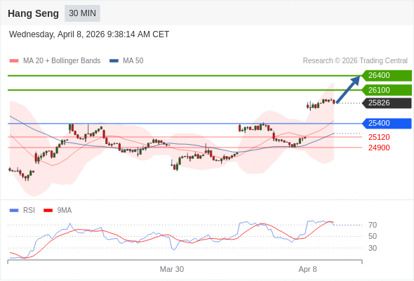 在 25400 之上,看涨,目标价位为 26100 ,然后为 26400 。