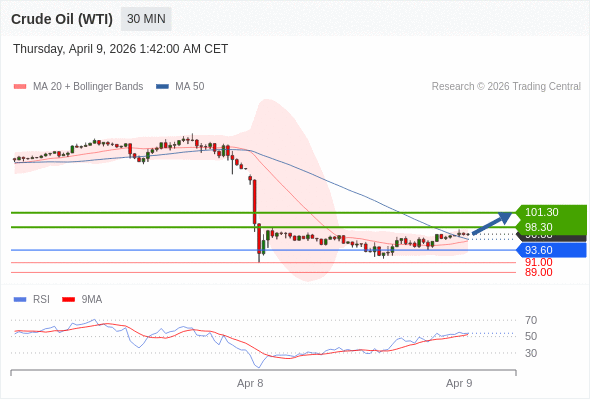 在 93.60 之上,看涨,目标价位为 98.30 ,然后为 101.30 。
