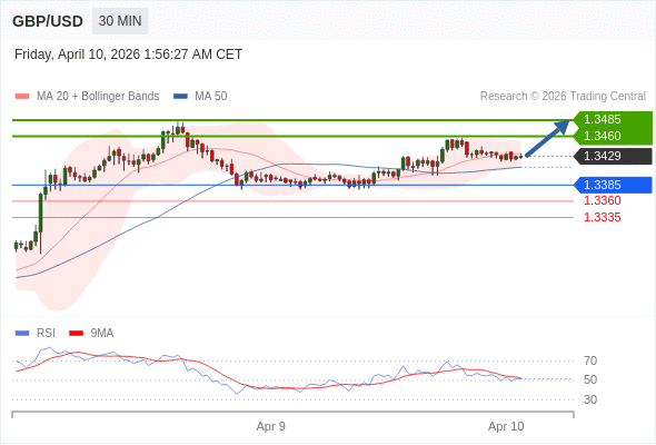在 1.3385 之上,看涨,目标价位为 1.3460 ,然后为 1.3485 。