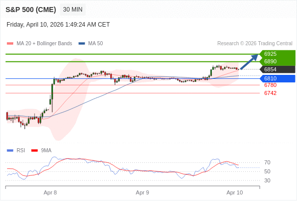 在 6810 之上,看涨,目标价位为 6890 ,然后为 6925 。