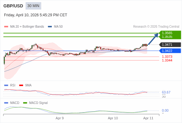 交易策略: 看涨,当 1.3422 为支撑位。
