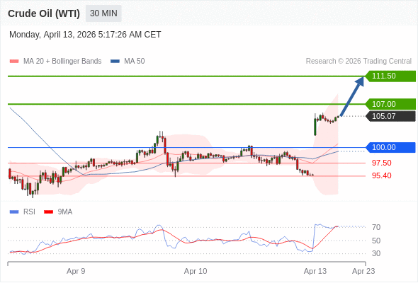 在 100.00 之上,看涨,目标价位为 107.00 ,然后为 111.50 。