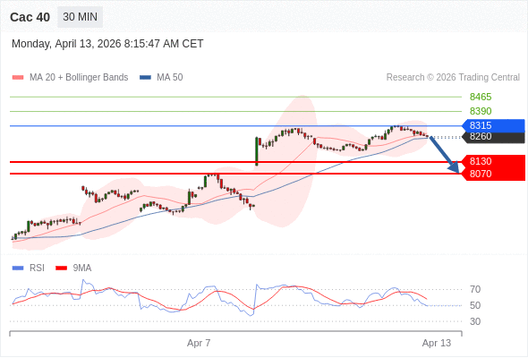 Cac 40 当日内: 短期关键阻力位在8315。