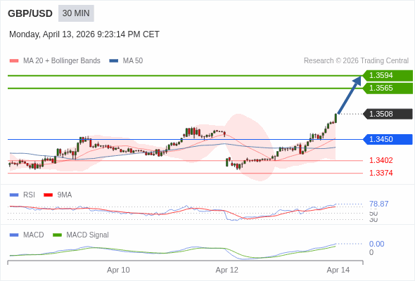交易策略: 看涨,当 1.3450 为支撑位。