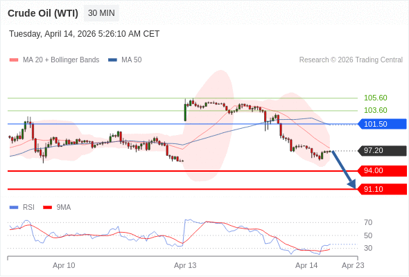 交易策略: 在 101.50 之下,看跌,目标价位为 94.00 ,然后为 91.10 。