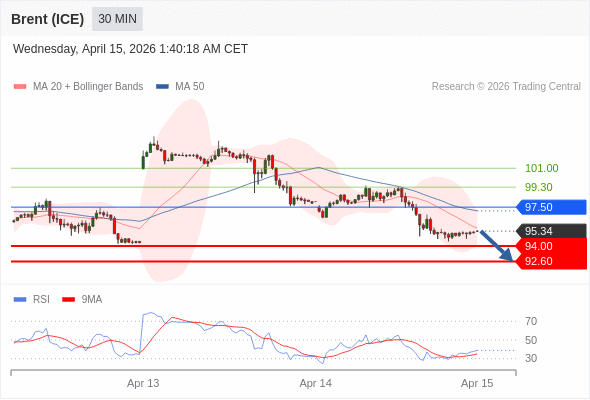 布伦特原油 (ICE) (M6) 当日内: 目标位为92.60。