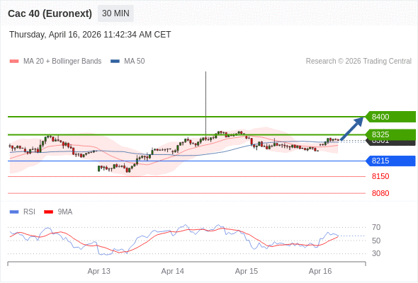 在 8215 之上,看涨,目标价位为 8325 ,然后为 8400 。