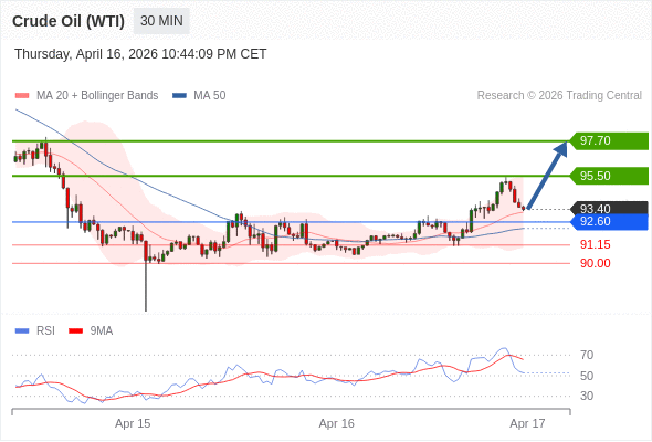 在 92.60 之上,看涨,目标价位为 95.50 ,然后为 97.70 。