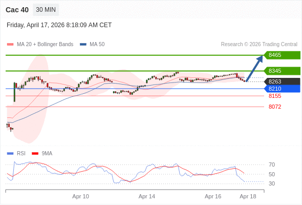 在 8210 之上,看涨,目标价位为 8345 ,然后为 8465 。