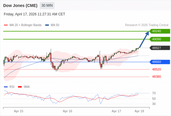 在 48660 之上,看涨,目标价位为 49090 ,然后为 49240 。