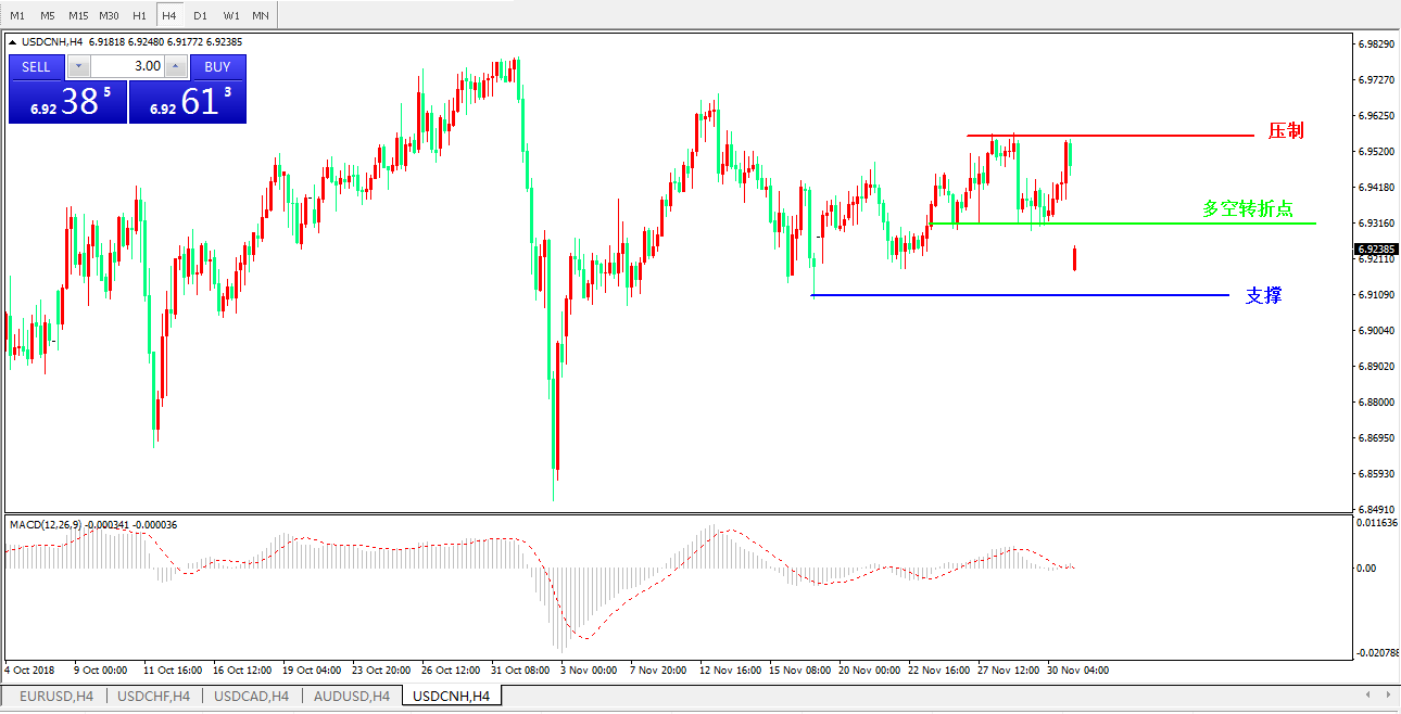 备选策略: 在6.9322之上,看涨,目标价位为6.9580,然后为6.9688。