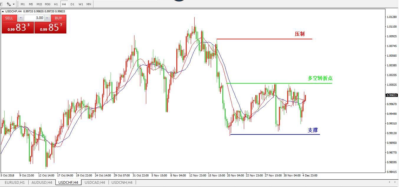 美元兑瑞郎USDCHF4小时图