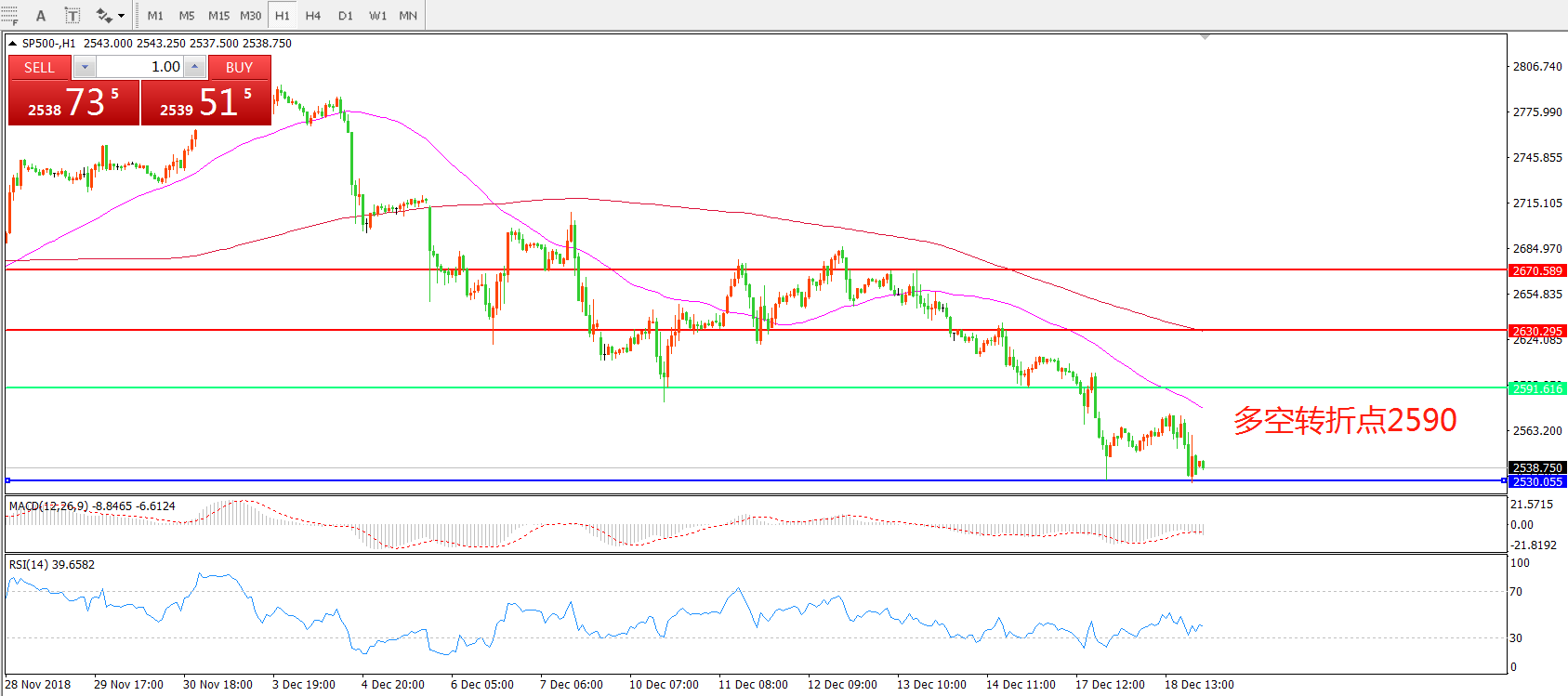 交易策略:在2590之下看跌,目标2550 2500